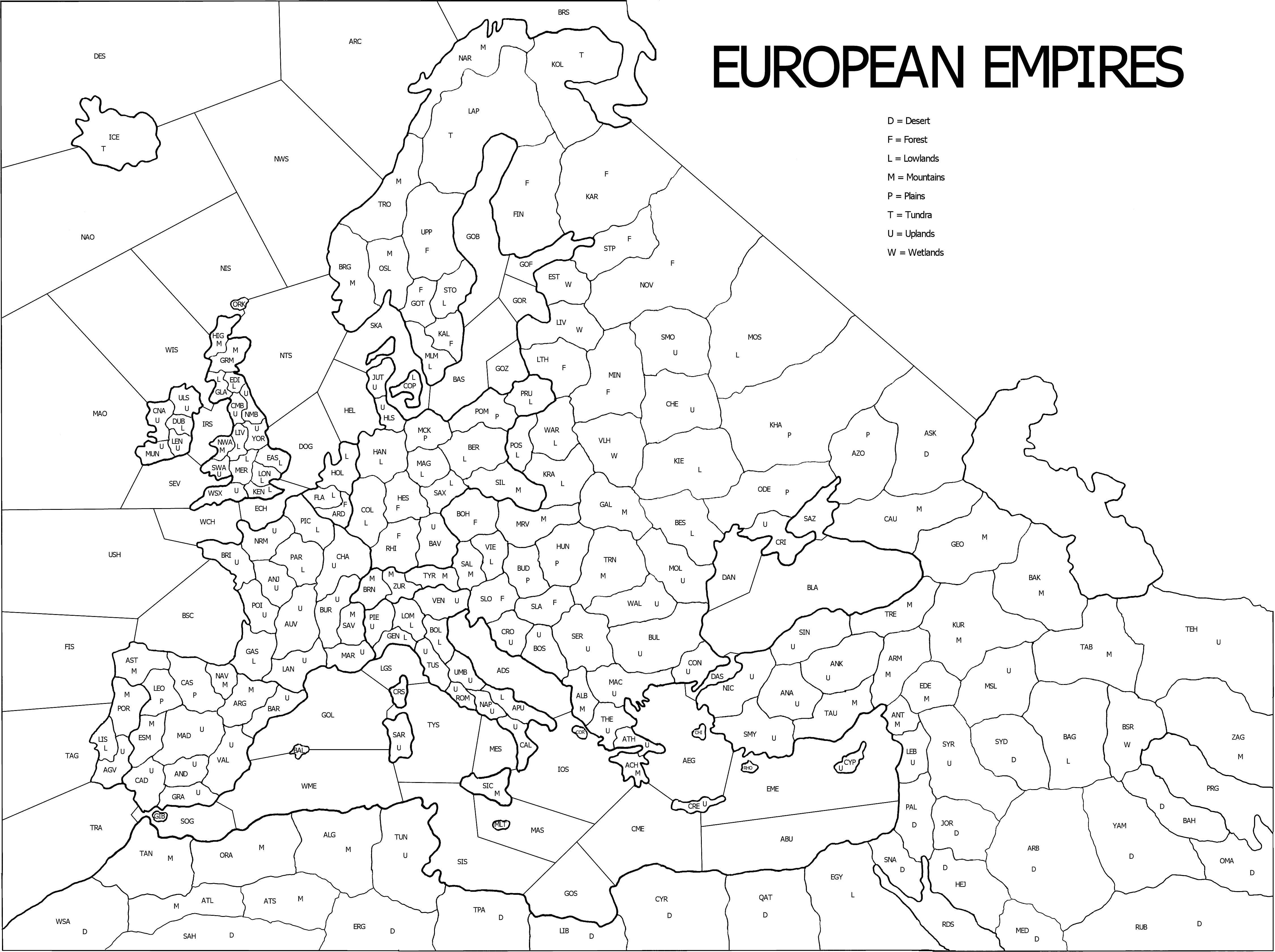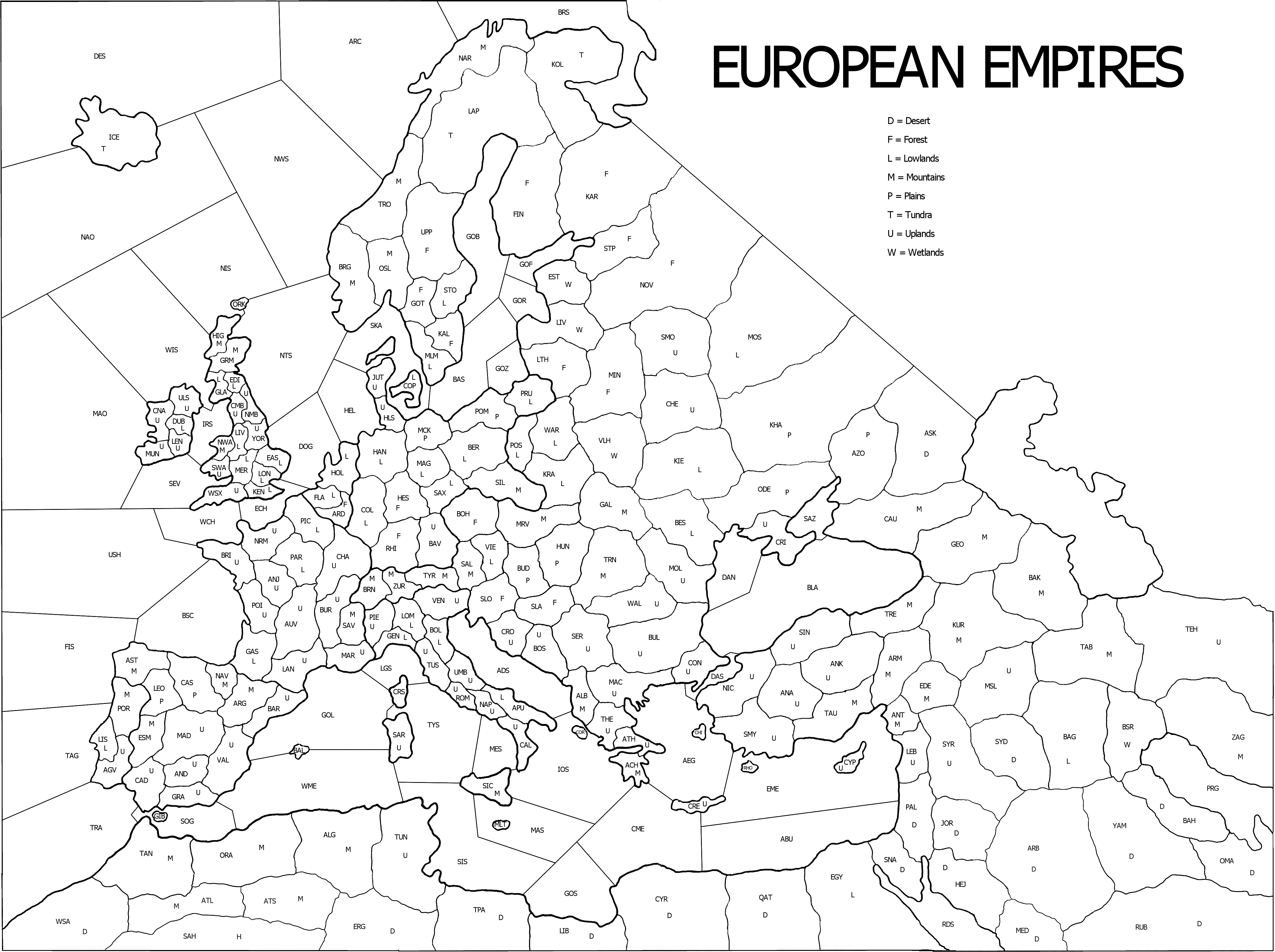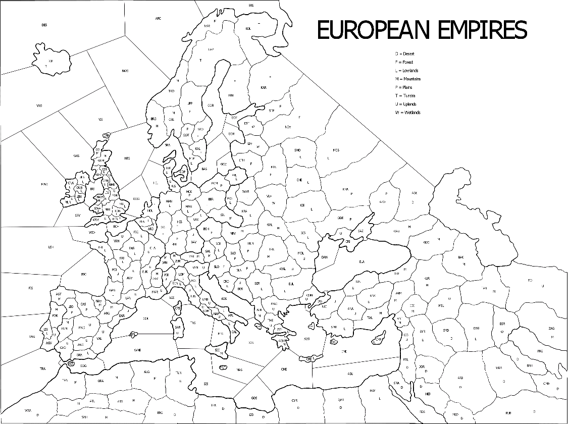GRAND STRATEGY IN THE AGE OF NAPOLEONIn European Empires you control one of the great powers of Europe at the time of Napoleon. You direct the armies and order the fleets in the first of the Great Wars that redrew the map of Europe. You make and break alliances and fight the campaigns of the French Revolutionary and Napoleonic Wars. THE MAPThe map is divided into land and sea areas. Land areas contain terrain (mountains, uplands, lowlands, plains, forests, wetlands and deserts), population (which generates income), armies (which fight) and forts (which make armies stronger defensively) and naval bases. In addition to the armies on the map each kingdom has a army reserve and navy reserves.